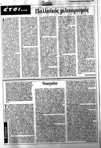 Του Μάκη Μπαλαούρα Η γιαγιά μου η Μόσχα (πραγματικό όνομα της), που της άρεσαν οι (διδακτικές) ιστορίες, όταν αρχίσαμε να μεγαλώνουμε, μας είπε μια, που μου αποτυπώθηκε έντονα στη μνήμη: {Κάποτε πάνε πολλά, μα πολλά χρόνια από τότε, κάποιοι άνθρωποι οι καλοί, κυνηγημένοι από τα άγρια θηρία, κυνηγημένοι από τα στοιχεία της φύσης και από […]