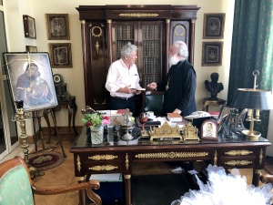 Ο Πατριάρχης, αφού ξενάγησε τον βουλευτή στο εντυπωσιακό κτίριο του Πατριαρχείου (πρώην Τοσίτσειο), τον δέχτηκε στο προσωπικό του, απέριττο γραφείο. Ο Μ. Μπαλαούρας εντυπωσιάστηκε από τη δραστηριότητα του Πατριάρχη, ο οποίος εκτός από το ποιμαντορικό έργο του, φημίζεται ότι επιμελείται και αναδεικνύει τα έργα τέχνης της Πατριαρχικής Περιφέρειάς του.